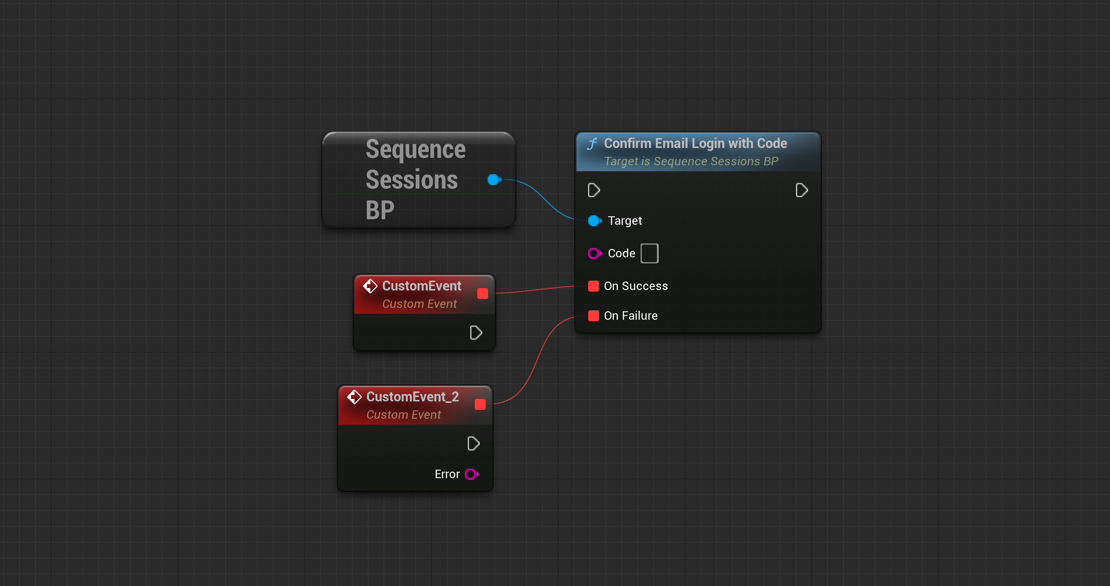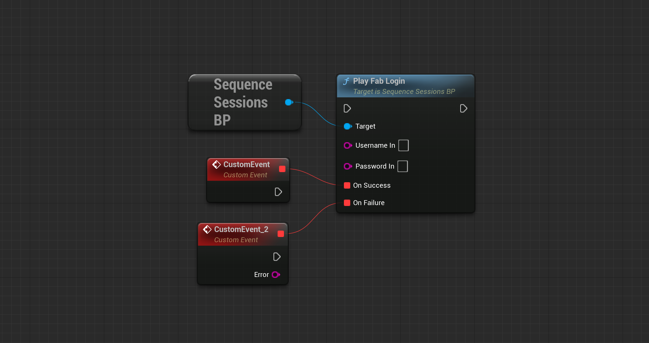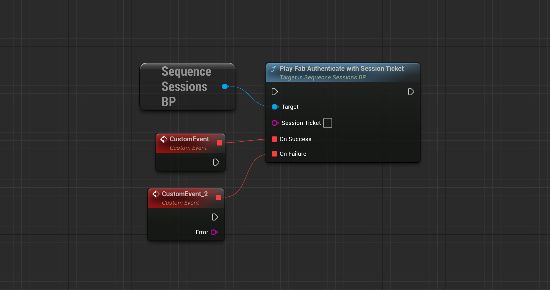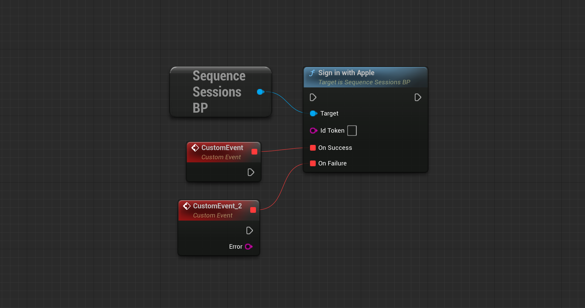 Sign In 関数を呼び出したら、SequenceSessionsBP サブシステムで Session Established イベントをリッスンし、サインインが成功したか確認します。問題が発生した場合は Session Creation Failure をリッスンしてください。