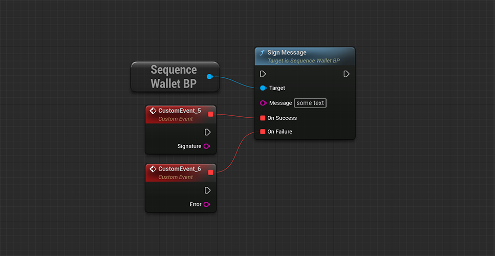 Wallet->SignMessage(TEXT("some text"), SuccessCallback, FailureCallback);